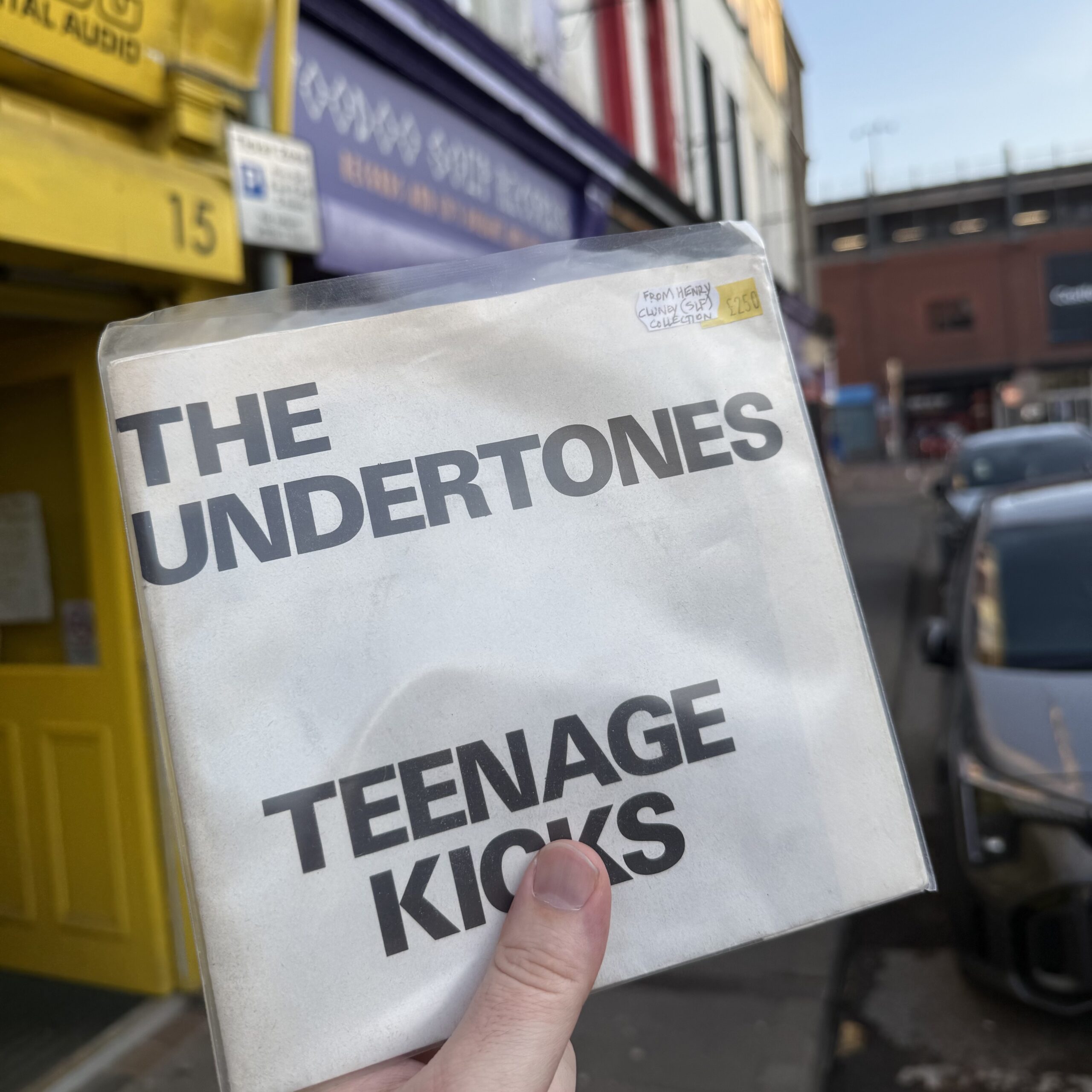 A ten minute walk brought me to the doorstep of Voodoo Soup, where three men twenty years my senior asked if I was the “Good Vibrations guy.” I affirmed, and was led inside by one of them. The shop had in its inventory several seven-inch records that had once belonged to Stiff Little Fingers’ guitarist Henry Cluney. And it was out of a small box marked “GOOD VIBRATIONS”—in typically punk-esque Sharpie handwriting—that the man who I assumed to be the owner of the shop pulled out an original (literal first pressing), Cluney-owned copy of THE Good Vibrations record.